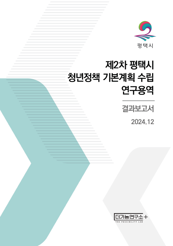 2020년부터 2024년까지 5년 간 진행된 평택시 청년정책의 성과를 분석하고, 평택 청년 대상 종합실태조사와 인터뷰를 통한 정책 수요를 발굴하여 지역 특성을 반영한 제2차 청년정책 기본계획의 비전·전략·세부 사업 제시